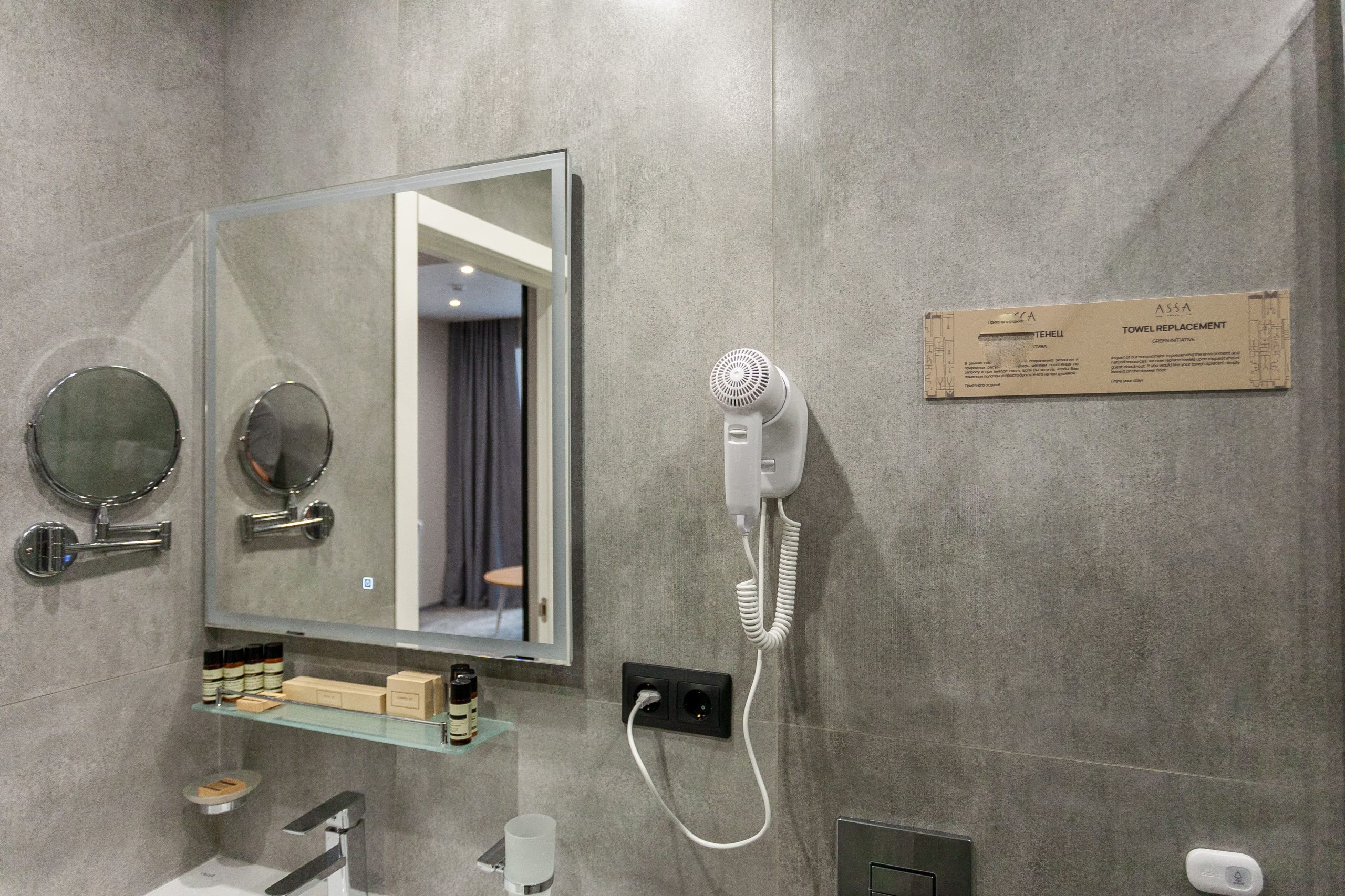 АССА Джуниор Сьют это фирменный эксклюзивный номер повышенной комфортности, общей площадью 44м2. Оформление номера выполнено в элегантном и уникальном дизайне с использованием мебели из натурального дерева и кожи. Это сочетание создаёт изысканную и уютную атмосферу, которая способствует расслаблению и спокойствию. Ванная комната оснащена современной сантехникой и высококачественными косметическими принадлежностями. В номере просторная гостиная зона и рабочее место. АССА Джуниор Сьют станет идеальным выбором для тех, кто ценит комфорт, изысканность и уединенность.